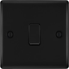 This matt black finish 20A 16AX single light switch from British General will operate one light switch in a room. The 2 way switching allows a second switch to be added to the circuit to operate the same light from another location (e.g. at the top and bottom of the stairs). This switch has a s..