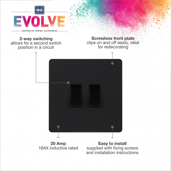 These modern and stylish switches and sockets are the latest addition to the BG Decorative Wiring Accessory portfolio. Designed with a slim, screwless profile, this comprehensive range offers a complete solution for any domestic or commercial application.