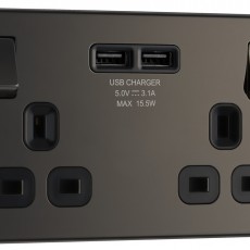 This completely screwless and slimline flat plate double 13A power socket from British General comes with two USB charging ports allowing you to plug in an electrical device and charge mobile devices simultaneously without having to sacrifice a power socket. The black nickel finish screwless flat pl..